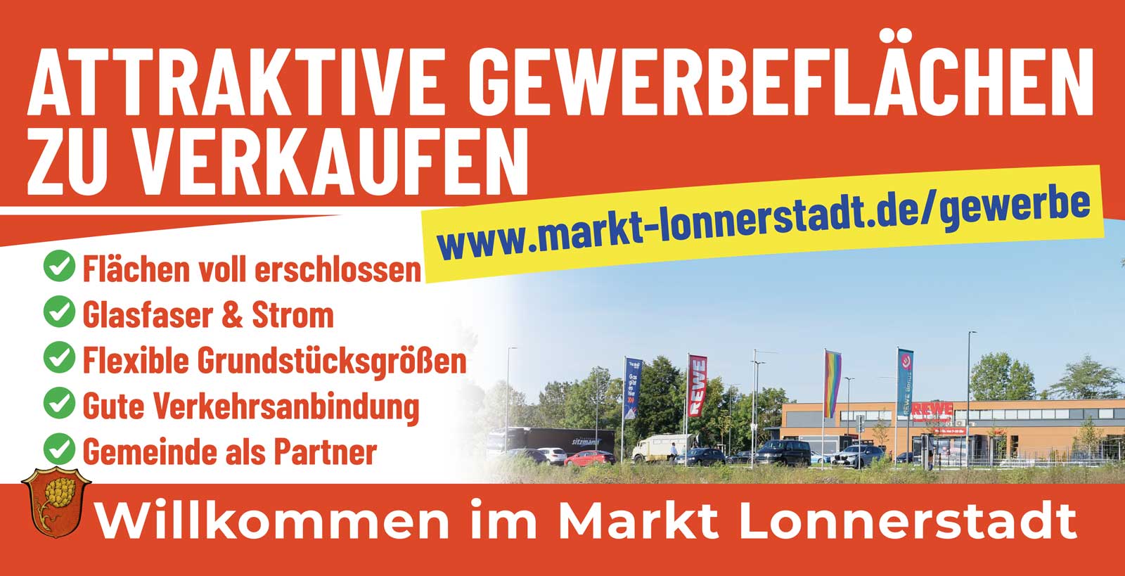 Der Markt Lonnerstadt bietet attraktive Gewerbeflächen zum Verkauf. Unser Standort im Landkreis Erlangen-Höchstadt in Mittelfranken verbindet wirtschaftliche Perspektive mit hoher Lebensqualität und guter Verkehrsanbindung.